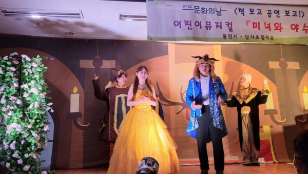 [사진] 열연하는 출연진 남사초(교장 김용수)는 용인시 도서관사업소가 주최하는 『2022년 ‘경기도 문화의 날’ 독서 권장 공연지원』 사업에 선정되어 『책 보고 공연 보고!-어린이 뮤지컬 』를 관람하였다. 도서관사업소는 문화예술 방면에서 자칫 소외되기 쉬운 농촌 학생들에게 독서문화를 장려함과 동시에 문화예술을 가까이에서 경험하도록 뮤지컬 를 기획하…