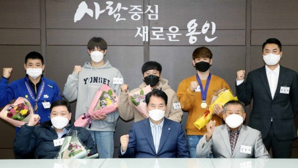 백군기 시장, 수영·배드민턴 선수단 만나 축하와 격려