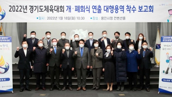 용인시가 18일 ‘2022년 경기도 종합 체육대회’의 ‘개·폐회식 연출 대행 용역 착수보고회’를 개최했다. 이날 용인시청 컨벤션홀에서 열린 보고회에는 백군기 용인시장을 비롯해 김상수 용인시의회 부의장과 문화·체육 관련 전문가 30여 명이 참석해 ‘제68회 경기도 체육대회’와 ‘제12회 경기도 장애인체육대회’의 개·폐회식 주제 및 연출 구성에 대해 활발하게 논의했다. 개·폐회식의 주제는 ‘…