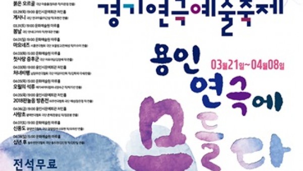(재)용인문화재단(이사장 정찬민)은 3월 21일부터 4월 8일까지 ‘경기연극예술축제’를 문화예술원 마루홀, 용인시문예회관 처인홀, 용인시여성회관 큰어울마당 등 총 3개 공연장에서 개최한다. 용인문화재단 주최, 한국연극협회 경기도지회 주관으로 개최되는 이번 ‘경기연극예술축제’는 총 15개 연극 공연을 선보이는 축제로 연극을 주제로 한 …