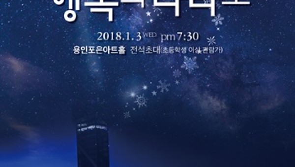 재)용인문화재단(이사장 정찬민)은 용인예총과 공동으로 오는 1월3일 오후7시30분 용인(포은아트홀에서 ‘2018 신년음악회-행복의 나라로’를 개최한다. ▲ 신년음악회-포스터- 재단은 지난 2013년부터 지역문화예술 기관 간의 상생발전과 화합의 기틀을 조성하고자 용인예총과 함께 ‘용인의 예술을 열다’를 지속적으로 개최하고 있으며, ‘2018 신년음악회-행복의 나라로’ 무대는 용인시민들에…