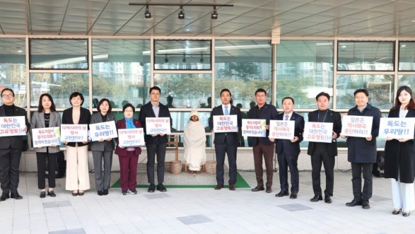 사진 : 경기도의회 독도사랑.국토사랑회, 일본 독도침탈 야욕 규탄하며 ‘다케시마의 날’ 폐지 촉구 성명서 발표 경기도의회 독도사랑·국토사랑회(회장 김용성 의원)는 14일 경기도의회 평화의 소녀상 앞에서 일본의 ‘다케시마의 날’ 폐지를 강력히 촉구하는 성…