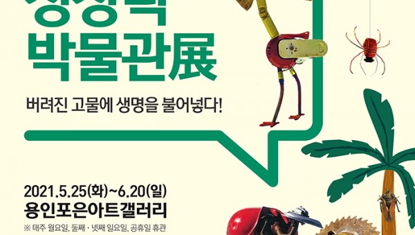 (재)용인문화재단(이사장 백군기)은 오는 20일(일)까지 을 용인포은아트갤러리에서 진행한다. 은 고물에 생명을 불어넣은 정크아트 작품 전시로 어린이와 가족 단위 관람객들에게 환경의 소중함을 느끼고, 사물을 보는 새로운 인식을 가져볼 기회를 제공한다. 시사 만화가로 오랫동안 활동한 반쪽이…