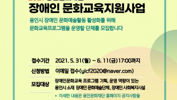 용인문화재단 <2021 장애인 문화교육지원사업> 공모