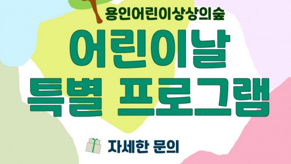 (재)용인문화재단(이사장 백군기)이 운영하는 용인어린이상상의숲(이하 상상의숲)은 어린이날을 맞이하여 온라인으로 사전 예약한 어린이와 가족을 대상으로 다양한 특별 프로그램을 운영한다. 새로 시작하는 예술놀이터 ‘초록발걸음(Green Cycle)’ …