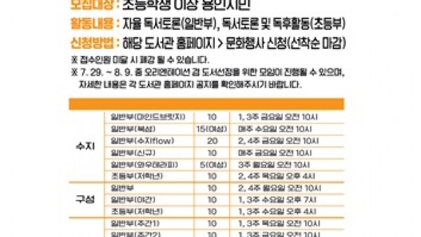 용인시도서관 하반기 독서동아리 회원 350여명 모집
