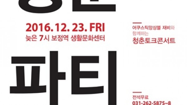 (재)용인문화재단(이사장 정찬민)은 12월 한 달 동안 보정역 생활문화센터에서 용인지역 청년들의 생활문화 활성화를 위해 ‘공부방을 빌려줄게’, ‘청년 문화인공호흡 프로젝트’, ‘청춘파티’ 등으로 구성된 ‘청춘놀이터’를 운영한다. …