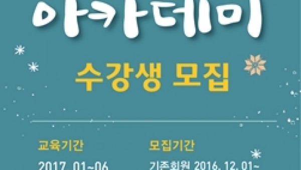 (재)용인문화재단(이사장 정찬민)은 유아부터 성인 등 전 연령층을 대상으로 전문 예술교육 프로그램을 제공하는 2017년 1학기 창의예술아카데미의 수강생을 12월 8일부터 모집한다. 어린…