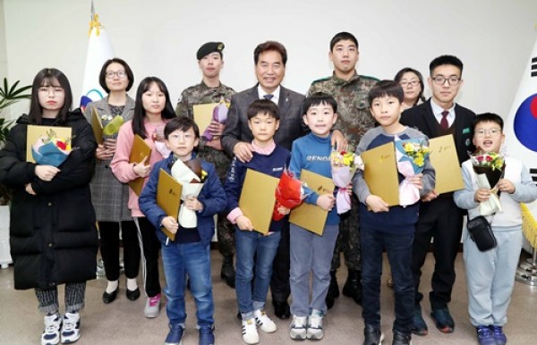 -처인성 독서 감상문대회 대상에 서천고 3학년 정수빈 학생 - -독서마라톤 1882명 참가 387팀 완주…우수완주자 20팀 선정 - 용인시는 28일 지난 9월 공모한 ‘처인성 전국 독서감상문 대회’ 수상자 28명과 지난 1~10월에 열린 ‘독서마라톤’ 우수 완주자 20명(팀)에 대한 시상식을 시장실에서 열었다. ▲ 처인성 독서 감상문 대회 수상자들…