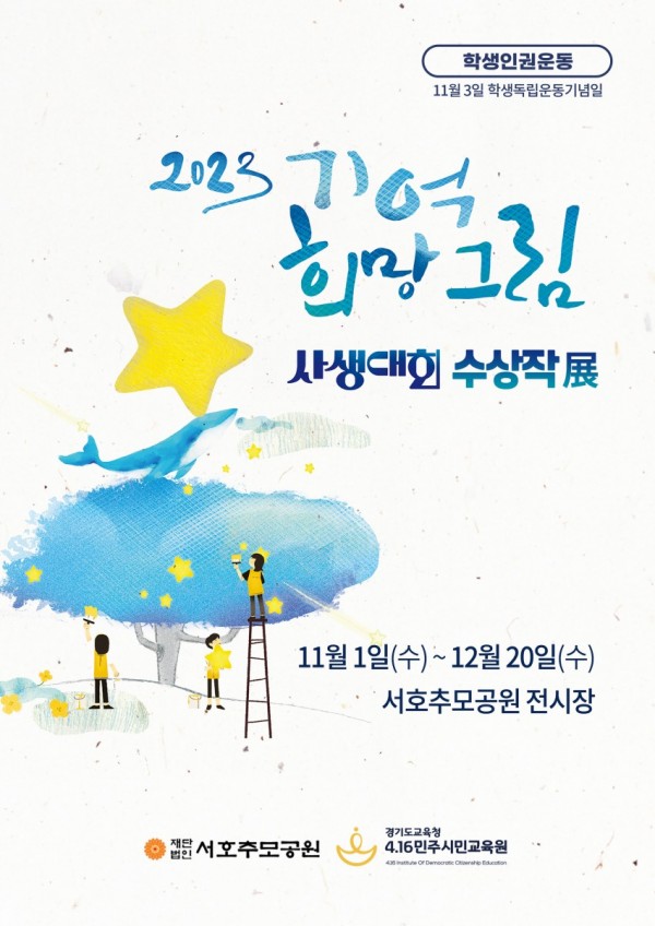 ◦ 12월 20일까지 서호추모공원에서 조문객 등 대상 45점 작품 전시◦ 학생 인권과 생명 안전 등을 주제로 사회적 참사 기억 공감 자리 학생 인권 작품 전시 포스터 11월 3일 학생독립운동기념일을 맞아 학생 인권 작품 전시회가 열린다. 4.16민주시민교육원(원장 전명선)은 다음달 20일까지 평택 소재 서호추모공원 1층 전시장에서 생명 존중과 관련한‘학생 인…