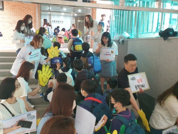 용인 교동초등학교(교장 임선애) 학부모회(회장 이진선)는 지난 5월 4일 학생들을 응원하고 학생들의 행복한 학교생활에 활기를 불어넣기 위해 ‘안녕! 애들아, 힘내! 사랑해!’ 의 구호 아래 하이파이브 아침맞이 데이를 운영했다. 교동초등학교 하이파이브데이 교동초등학교 하이파이브데이 이 행사는 코로나19로 힘들었던…