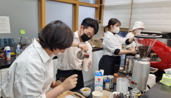 재단법인 용인시청소년미래재단(이사장 이상일) 청소년지원센터 꿈드림에서는 15일 2022년 자립작업장 드림팩토리 바리스타 과정에 참여한 학교 밖 청소년들이 함께 모여 “원데이 별의 커피” 무료 나눔 카페를 운영했다. 이 날 원데이 별의 커피에는 학교 밖 청소년 및 학부모, 지역 주민, 유관 기관 관계자 등 총 100여 명이 참석하였으며 학교 밖 청소년들이 그동안 배운 기술과 기량을 발휘하여 직접 음료를 제조하…