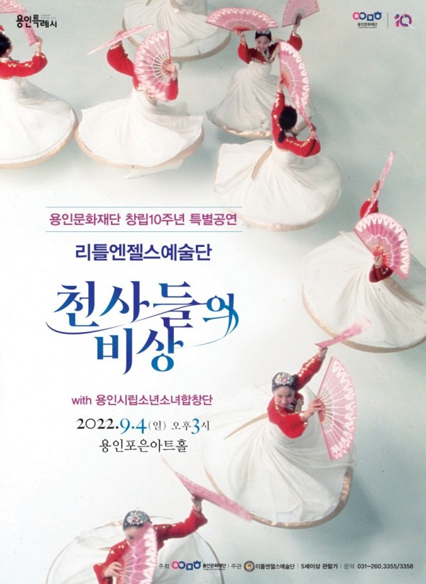 (재)용인문화재단(이사장:이상일)은 오는 9월 4일 오후 3시 용인시립소년소녀합창단과 리틀엔젤스예술단의 우정이 돋보이는 을 공연 한다. 이번 공연은 올해 10주년을 맞은 용인문화재단과 60주년을 맞은 리틀엔젤스예술단의 합작공연으로 리틀엔젤스예술단의 한국 전통 무용 뿐 아니라 용인시립소년소녀합창단이 함께 합창 콜라보레이션 무대를 선보이며 서로를 기념하는 우정의 교류 공연을 진행할 예정이다. …
