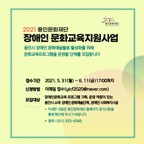 용인문화재단 <2021 장애인 문화교육지원사업> 공모