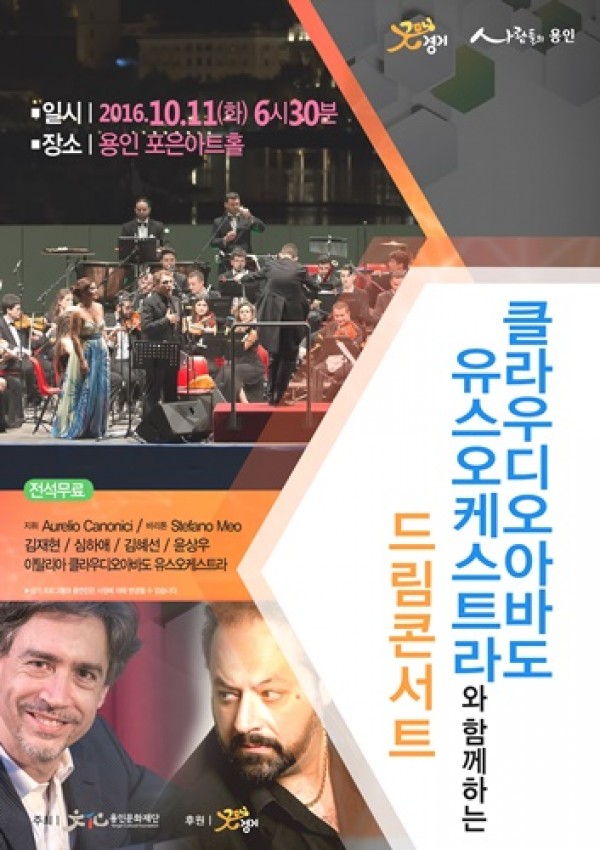 재)용인문화재단(이사장 정찬민)이 주최하고 경기도가 후원하는 ‘클라우디오 아바도 유스 오케스트라와 함께하는 드림 콘서트’가 오는 10월 11일(화) 오후 6시 30분에 용인포은아트홀에서 열린다. 클라우디오 아바도 유스 오케스트라(이탈리아)는 베를린필하모닉오케스트라의 수석 지휘자로 활동했던 클라우디오 아바도가 청소년 음악 교육을 목적으로 창립한 오케스트…