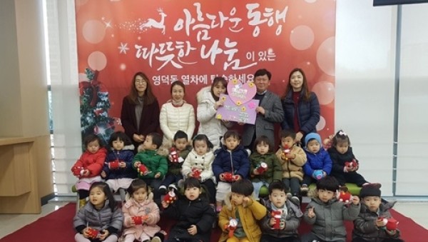 용인시 기흥구 영덕동은 관내 4곳 어린이집의 교직원과 원아들이‘사랑의 열차 이어달리기’에 성금 98만8930원을 기부했다고 3일 밝혔다. 따뜻한 이웃 사랑을 실천하기 위해 1년간 저금통에 성금을 모아 기탁한 주인공들은 시립새솔어린이집, 시립흥덕어린이집, 호반사랑나무어린이집, 라온어린이집 원아들과 교직원 100여명이다. 호반사랑나무어린…