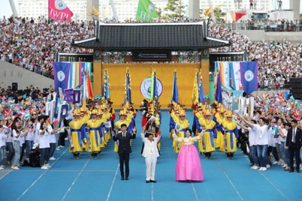 전쟁종식 및 세계평화를 염원하는 25만 국내외 참가자들의 함성이 18일 인천 아시아드주경기장을 비롯해 서울, 부산, 광주, 전주, 제주 등 전국 26개 도시와 해외 97개 도시에서 동시에 울려 퍼졌다. ▲ 전쟁종식 세계평화 축제 UN 경제사회이사회(ECOSOC) 및 UN 공보국(DPI)에 등록된 국제 평화 NGO인 (사)하늘문화세계평화광복(HWPL·대표…