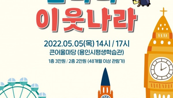 (재)용인문화재단(이사장 백군기)은 클래식이 있는 뮤지컬 을 5월 5일 어린이날 14시, 17시에 큰어울마당에서 진행한다. 대한민국 역사 만화의 최장기 베스트셀러이자 많은 사람들의 사랑을 받고 있는 교육만화 도서 ‘먼나라 이웃나라 시리즈’를 원작으로 한 이번 공연은 역사의 현장을 짜임새 있는 스토리를 클래식으로 풀어냈으며, 원작의 만화 슬라이스와 영국의 역사현장과 아름다운 풍…