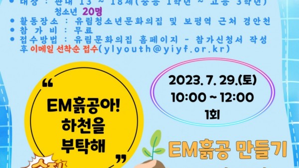 우리함께 도란도란 『1기. 환경정화활동 - EM흙공』 참가자 모집