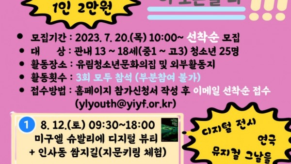유림청소년문화의집, 『예감좋은 토요일』 참가자 모집