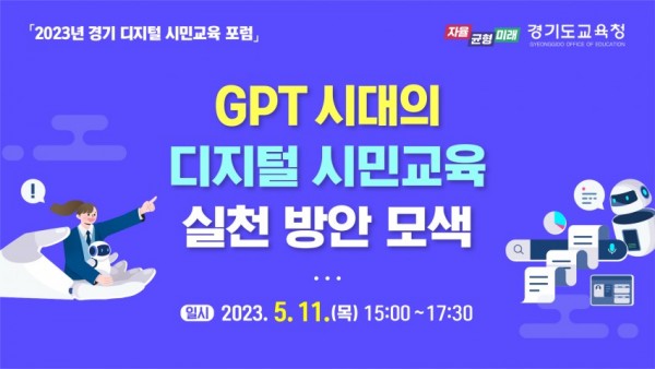 ◦GPT의 윤리적 활용을 위한 디지털 시민역량 교육 실천 방안 모색◦GPT와 협업, 새로운 가치 창출하는 디지털 창의역량 교육 방안 제시◦GPT 시대의 학교 현장의 AI 활용·융합·윤리교육 실천 사례 나눔 경기도교육청(교육감 임태희)이 11일 오후 디지털 시민교육 관점에서 GPT 시대의 교육 방안 모색과 실천 사례를 공유하는 ‘GPT 시대의 디지털 시민교육’포럼을 개최한다. &…