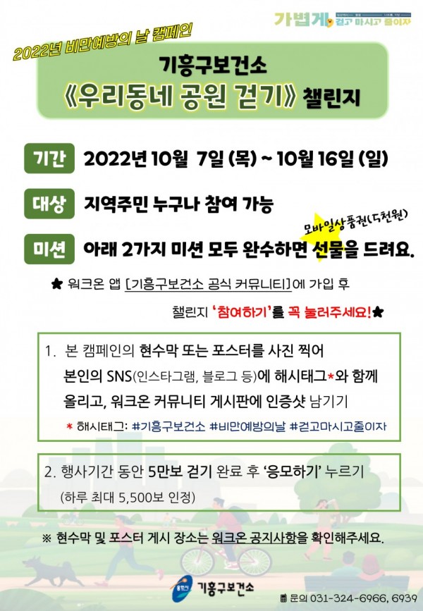 - 용인특례시, 비만 예방의 날(10월 11일) 기념해 3개 구 보건소서 걷기 챌린지 진행 -