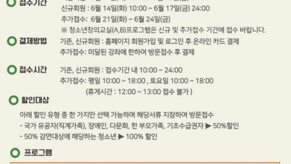 (재)용인시청소년미래재단 신갈청소년문화의집은 14일부터 6월 24일까지 11일간 청소년을 위한 3분기(7월~9월) 프로그램 수강생을 모집한다고 밝혔다. 7월 5일부터 개강하는 이번 문화강좌는 관내 8~13세 청소년을 대상으로 균형적인 발달을 위…