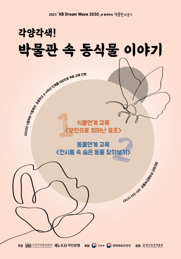 용인시 처인구 소재의 재단법인 한국등잔박물관은 오는 11월까지 ‘각양각색! 박물관 속 동식물 이야기’ 교육을 진행한다. ‘KB Dream Wave 2030과 함께하는 박물관 노닐기’ 사업으로 진행되는 이번 프로그램은 (사)한국박물관협회가 주관하고 국민은행과 문화체육관광부가 후원한다. 이 교육프로그램은 어린이들에게 민속공예품을 관람하며 선조들이 남긴 문화유산…