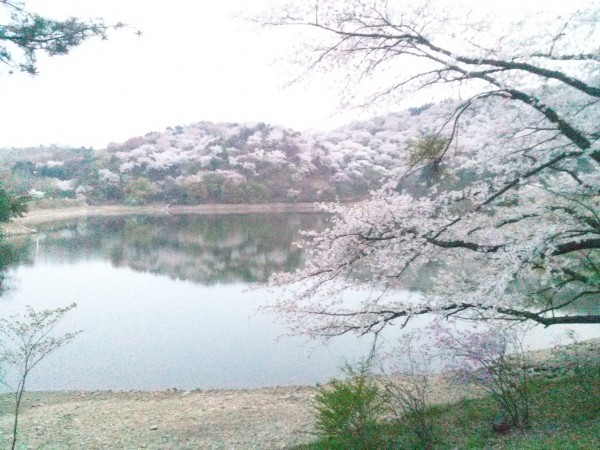 호암미술관 앞 벗꽃이 활짝피어 호수에 비친 수채화같은 아름다운 풍경