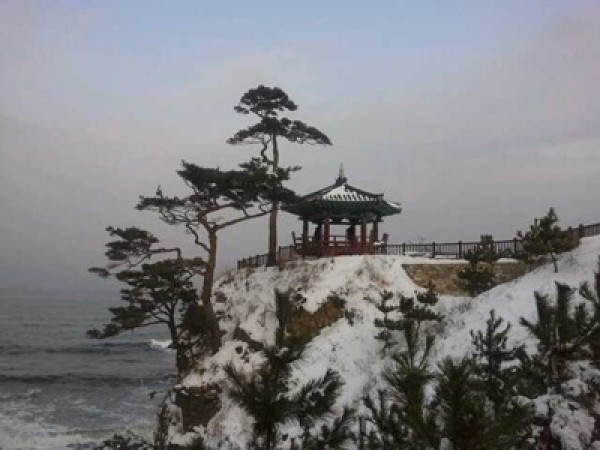 눈덮힌 동해안의 낙산사