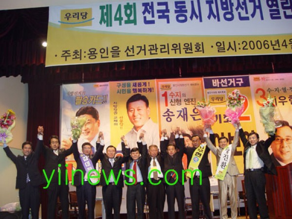 용인시장후보 경선을 실시한 열린 우리당에서는 을구와 갑구에서 기간당원과 일반당원의 투표결과 총 2555명이 투표를 하여 수지에…