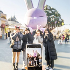 2023년 계묘년(癸卯年) 새해를 닷새 앞둔 27일, 에버랜드를 방문한 시민들이 높이 15m 크기의 초대형 토끼 '래빅' 앞에서 사진을 찍고…