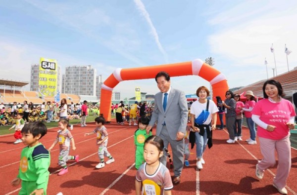 백군기 용인시장은 25일 마평동 용인종합운동장에서 열린 어린이 마라톤대회에 참가한 3600여명의 어린이들을 격려했다. ▲ 용인시어린이집연합회와 기아대책이 함께하는「사랑을 나누는 어린이 마라톤대회」 용인시어린이집연합회가 주최하고 한국국제기아대책기구가 주관한 이날 행사에는 관내 103곳 어린이집의 영아들이 한자리에 모여 다양한 체육행사를 하며 …