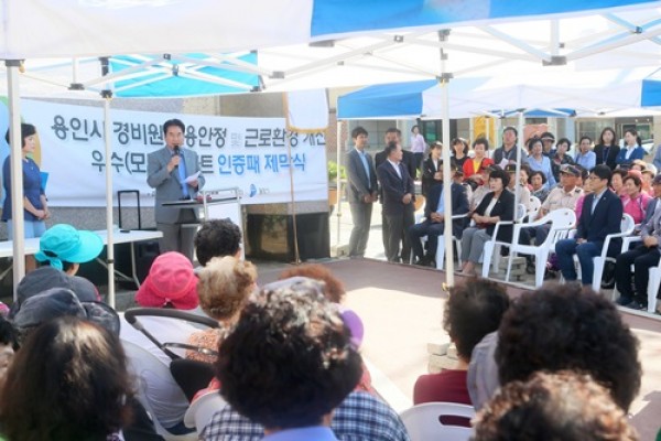 용인시노사민정협의회는 18일 경비원 근무 환경 개선에 노력한 모범 단지로 선정된 처인구 포곡읍 둔전리 금전마을 계룡리슈빌 아파트에 인증패를 전달, 제막식을 가졌다. ▲ 경비원 고용안전 우수아파트 인증패 제막식 이날 행사에는 백군기 용인시장을 비롯해 김광수 (사)용인시아파트연합회장, 협의회 관계자, 경비원, 주민 등 150명이 참석했다. …