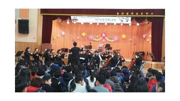 12월 15일 용인심곡초등학교(교장 이규만)에서는 직접 찾아가는 오케스트라 문화예술공연을 광교에서 실시하였다. 1학년부터 6학년까지 모든 학년이 두루 관람할 수 있도록 공연을 3회 나누어 진행했다. ‘파시오…