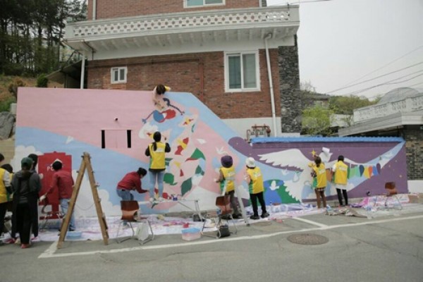 평화를 상징하는 비둘기 벽화그리기 봉사활동