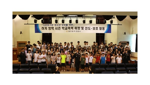 용인동부경찰서(서장 이왕민)는 지난 4일 용인동부경찰서 대강당에서 다문화 가정 청소년 보호를 위한 여름 방학 맞이 학교폭력 예방 및 선도‧보호활동을 실시하였다. &n…