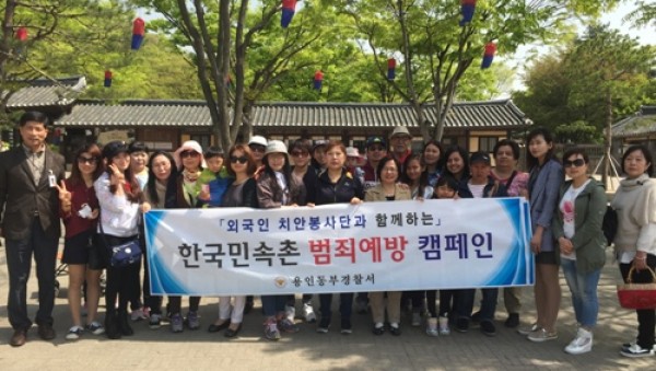 용인동부경찰서(서장 이왕민) 다문화 치안봉사단은 4월 25일 행락철 외국 관광객들이 많이 방문하는 한국민속촌을 찾아 범죄예방 캠페인을 실시하였다. 한국민속촌을 방문한 외국관광객들에게 범죄대처요령에 대한 팸…