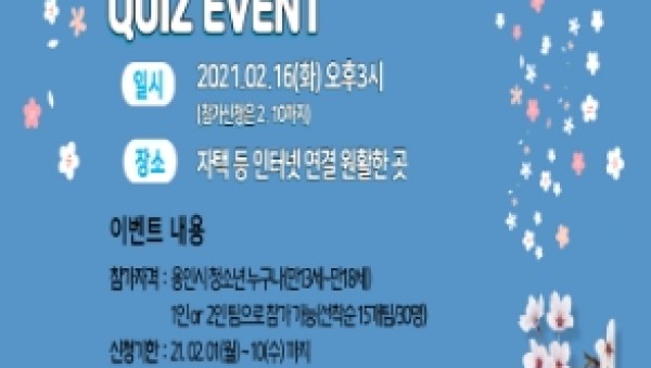 용인서부경찰서(서장 이지춘)에서는청소년을 대상으로 2월 16일 오후3시(2.1~2.10, 참가접수) “2021 POL 퀴즈 온 더 블록”을 비대면 온라인 방식으로 개최 한다.퀴즈대회는 코로나 19로 가정에 머무는 시간이 많아져 범죄에 노출 우려가 많은 용인시 청소년을 대상, 학교폭력 …