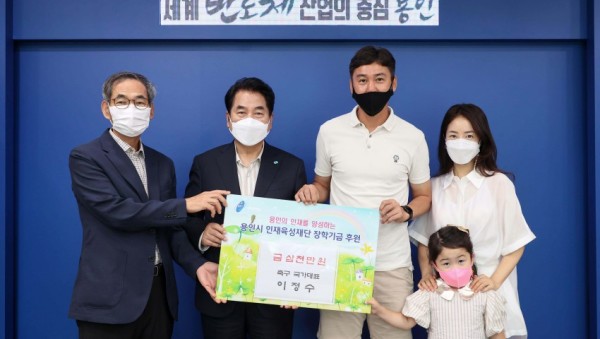 국가대표 출신의 이정수 수원FC 수석코치가 15일 용인시 인재육성재단(이사장 김춘식)에 유소년 축구 꿈나무 지원금 3,000만 원을 기탁 했다. 이날 용인시청에서 열린 기탁식에는 백군기 용인시장을 비롯해 김춘식 이사장, 이정수 코치 등이 참석했다. …