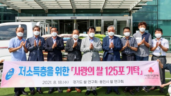 용인시는 18일 용인시 쌀 연구회 등 농업인들이 ‘쌀의 날’을 맞아 어려운 이웃돕기에 써달라며 10㎏짜리 백미 125포를 기탁 했다고 밝혔다. 이날 권병인 용인시 농업인단체협의회장, 정균현 용인시 쌀 연구회장 등 관계자들은 시청을 찾아 백군기 시장과 면담 후 500만 원 상당의 백미를 전달했다. 권병인 농업인단체협의회장은 “어려운 이웃을 돕기 위해 농업인들이 뜻을 모았다”며 “앞으로도 소외 계…