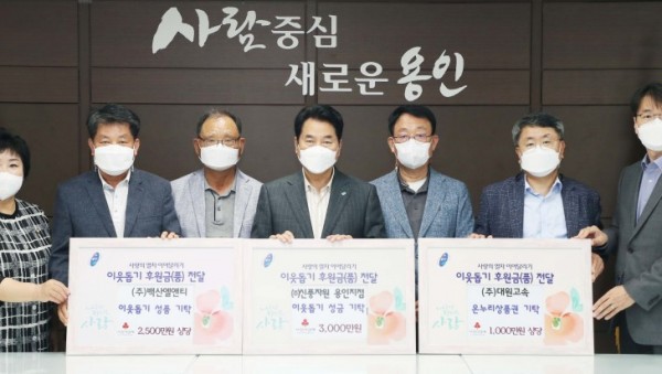 추석 명절을 맞아 경제적 어려움을 겪고 있는 용인시의 어려운 이웃과 사회복지시설을 돕기 위한 온정의 손길이 이어졌다. 7일 용인시청 시장실에는 문종식 대표를 비롯한 ㈜신풍자원 관계자들이 방문해 어려운 이웃을 위해 써달라며 성금 3,000만 원을 기탁 했다. 문종식 대표는 “추석 명절을 맞아 어려운 이웃들을 위해 마련했다”며 “경제적 어려움을 겪는 분들에게 도움이 되길 바란다”라고 말했다. &n…