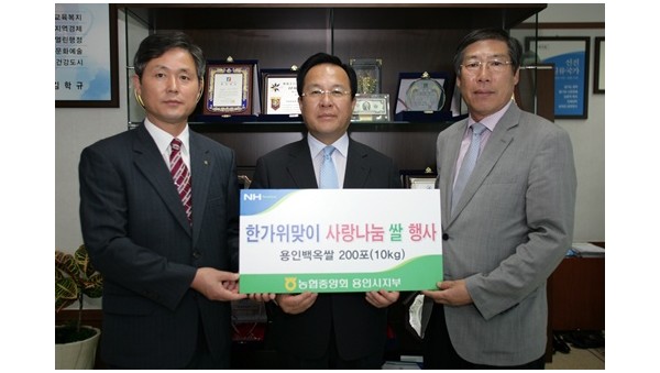추석명절을 맞아 각계에서 온정의 성품 기탁이 이어지고 있다. 용인시 농협중앙회 서은호 지부장이 29일 용인시를 방문해 김학규 시장에게 명절맞이 이웃돕기 성품 백미 200포(10kg/포 450만원 상당)를 기탁했으며 (주)경기·대원고속(대표이사 허명회) 조규갑 기획조정실장도 백미 200포(20kg/포 900만원 상당)를 전달했다. 김학규 시장은 “명…