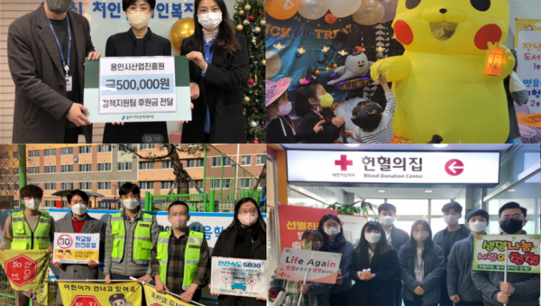 용인시산업진흥원, 각종 사회공헌활동 용인시산업진흥원(이사장 이상일, 이하 진흥원)은 올 한 해 관내 이웃사랑 실천을 위한 각종 사회공헌활동을 전개했다. 이번 사회공헌활동은 진흥원 8개 부서별로 사회복지시설 진행 보조, 헌혈, 환경정화활동, 교통안전도우미…