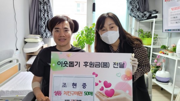 기초생활수급비을 받는 상황에서 자신보다 어려운 이웃을 위해 따뜻한 나눔을 실천한 이가 있어 주위를 훈훈하게 하고 있다. 20일 용인시 기흥구 보라동에는 특별한 나눔이 찾아왔다. 장애를 갖고 있는 기초생활수급자인 조현증(46) 씨가 주변의 어려운 이웃에게 전해달라며 치킨 …
