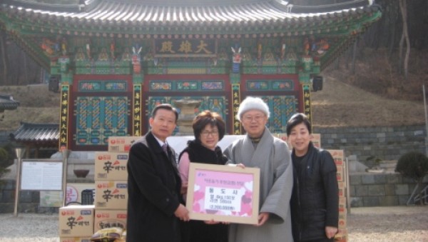 용인시 처인구 이동면 어비리에 소재한 ‘동도사’ (주지 도원혜성)에서는 19일 이동면사무소에 쌀 100포(4kg), 라면 58박스 등 220여만원 상당의 성품을 기탁했다. ‘동도사’는 1993년부터 불우이웃…