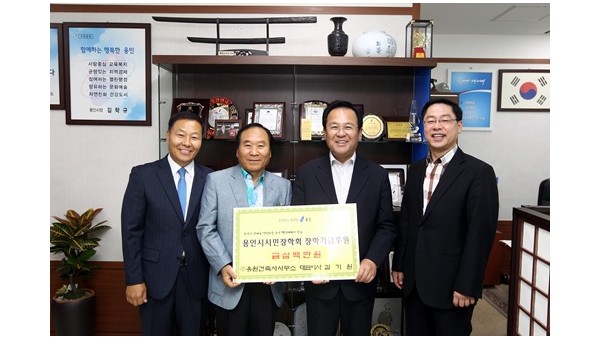 ㈜유원 건축사 사무소 김기원 대표가 지난 21일 용인시시민장학회에 장학금 300만원을 기탁했다. 현재 용인시 건축협회장을 맡고 있는 김기원 대표는 기업 이윤의 사회적 환원을 통한 상생을 목표로 직원 200여명과 함…