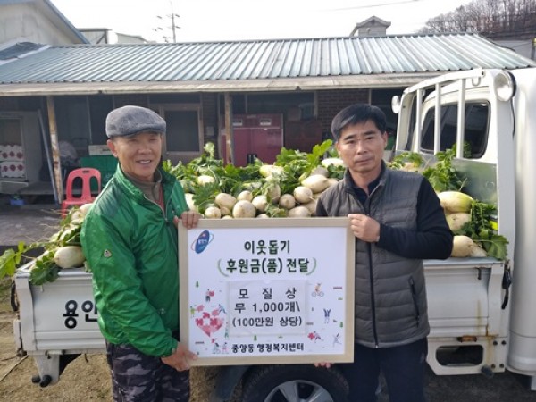 중앙동, 빵할아버지 모질상씨 무 1000개 이웃에 기탁