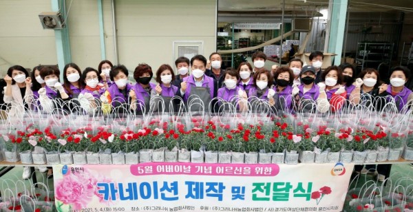 어린이날과 어버이날을 맞아 용인시에 어려운 이웃들을 위한 따뜻한 나눔이 넘쳐났다. 4일 용인시 여성단체협의회(회장 이윤송)는 백군기 용인시장을 만나 어버이날을 맞은 관내 저소득 어르신들을 위해 카네이션 화분 600개를 전달했다. 카네이션은 처인구 남사면에 위치한 (주)그리니쉬 농업회사법인에서 후원받았으며, 백 시장과 여협 회원들이 이날 분갈이 작업을 진행해 화분을 제작했다. …