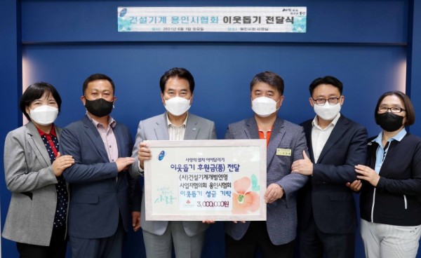 용인시의 어려운 이웃을 위해 (사)건설기계 개별연명 사업자협의회 용인시협회(회장 이경중)가 성금 300만 원을 기탁했다. 1일 용인시청에서 열린 기탁식에는 백군기 용인시장과 이경중 회장, 최용관 부회장, 최금순 협력국장, 김명순 봉사 국장, 배정학 고문 등이 참석했다. 이경중 회장은 “2019년에 이어 올해도 성금을 기부하게 됐다”며 “코로나19 장기화로 더욱 힘든 나날을 보…